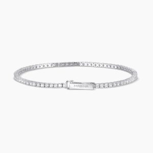 Descrizione del prodotto • Diametro degli zirconi bianchi: 3 mm • Misura: 17 cm • Materiale: Argento 925, Zirconi Cura del prodotto Acqua, raggi solari o contatto con composti chimici (creme, profumi, detersivi, ecc.) possono danneggiare o scolorire i gioielli. … Leggi altro -