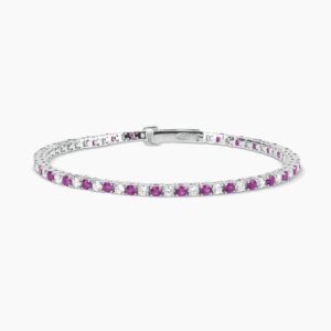 Descrizione prodotto Bracciale tennis in argento con rubini sintetici e zirconi. • Incastonatura a griffe • Diametro dei rubini sintetici e degli zirconi: 2.5 mm • Chiusura a pinza con molla • Lunghezza 17 cm • Materiale: Argento 925, Rubino … Leggi altro -