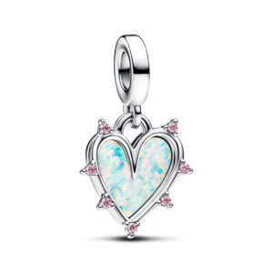 Hearts sterling silver double dangle with pink lab-created opal and fancy fairy tale pink cubic zirconia Collezione PANDORA Categoria Prodotto Charm Materiale Sterling silver Pietre Mixed stone Altro Materiale No other material Colore Pink Codice 793434C01 Collezione Pandora 2024 E -