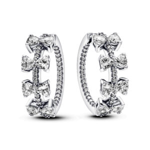 Bow sterling silver hoop earrings with clear cubic zirconia Collezione PANDORA Categoria Prodotto Orecchini Materiale Sterling silver Pietre Cubic Zirconia Altro Materiale No other material Colore Clear Codice 293545C01 Collezione Pandora 2024 G -