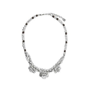 Collana girocollo con lacci in pelle testa di moro e sassolini in argento. I pendenti sono a forma di monete in gruppi di tre e sul centrele c’è inciso “Amour Suerte e Salud”. Un gioiello fatto a mano da UNOde50 e Made … Leggi altro179,00€143,00€ -