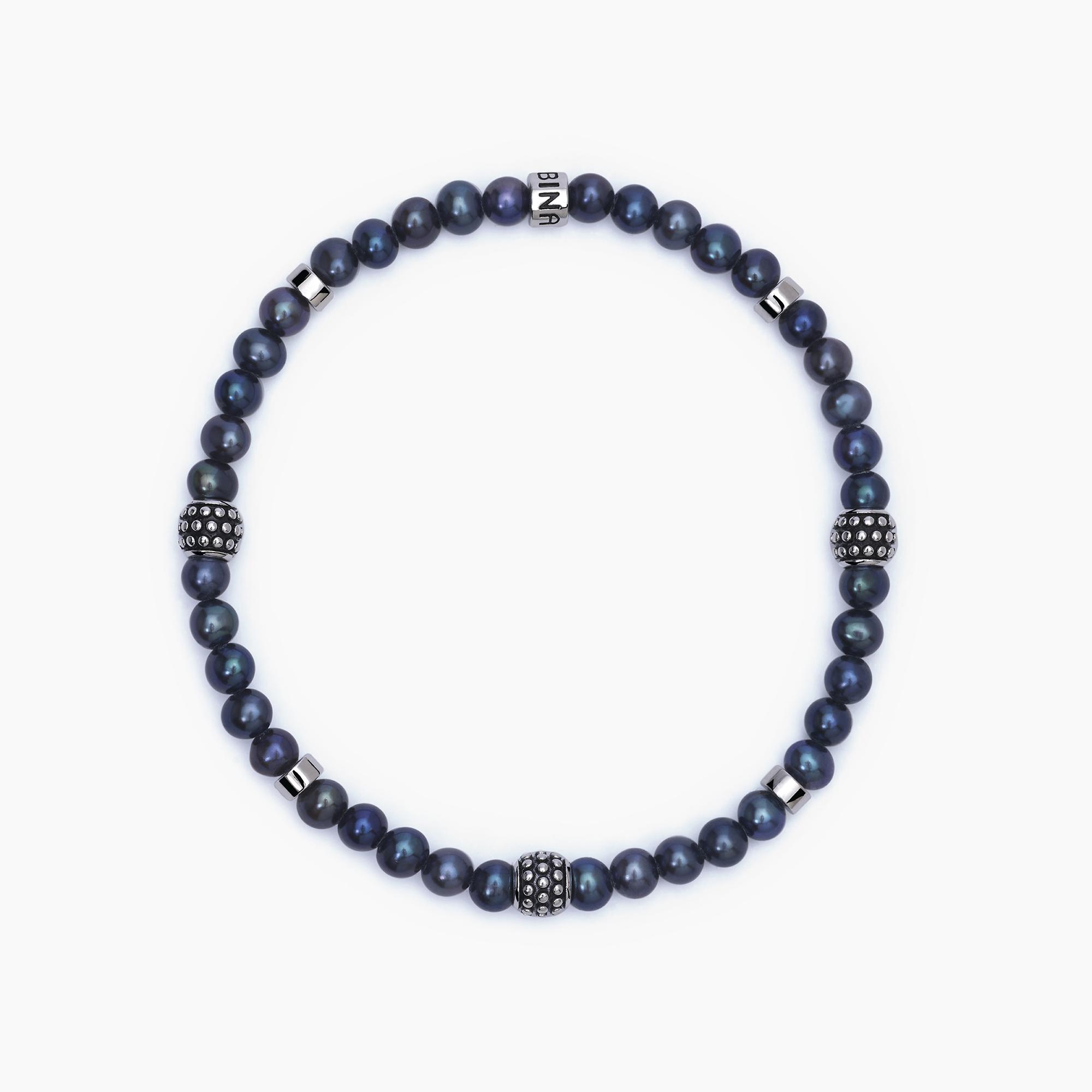 Bracciale da uomo in argento rodiato con perle coltivate nere.