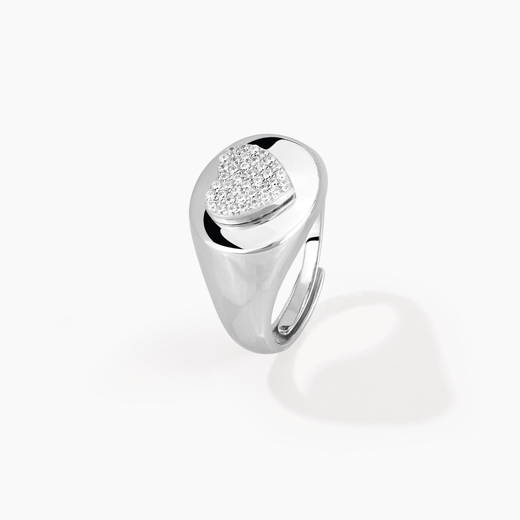 Anello chevalier in argento con cuore in pavé di zirconi.523156