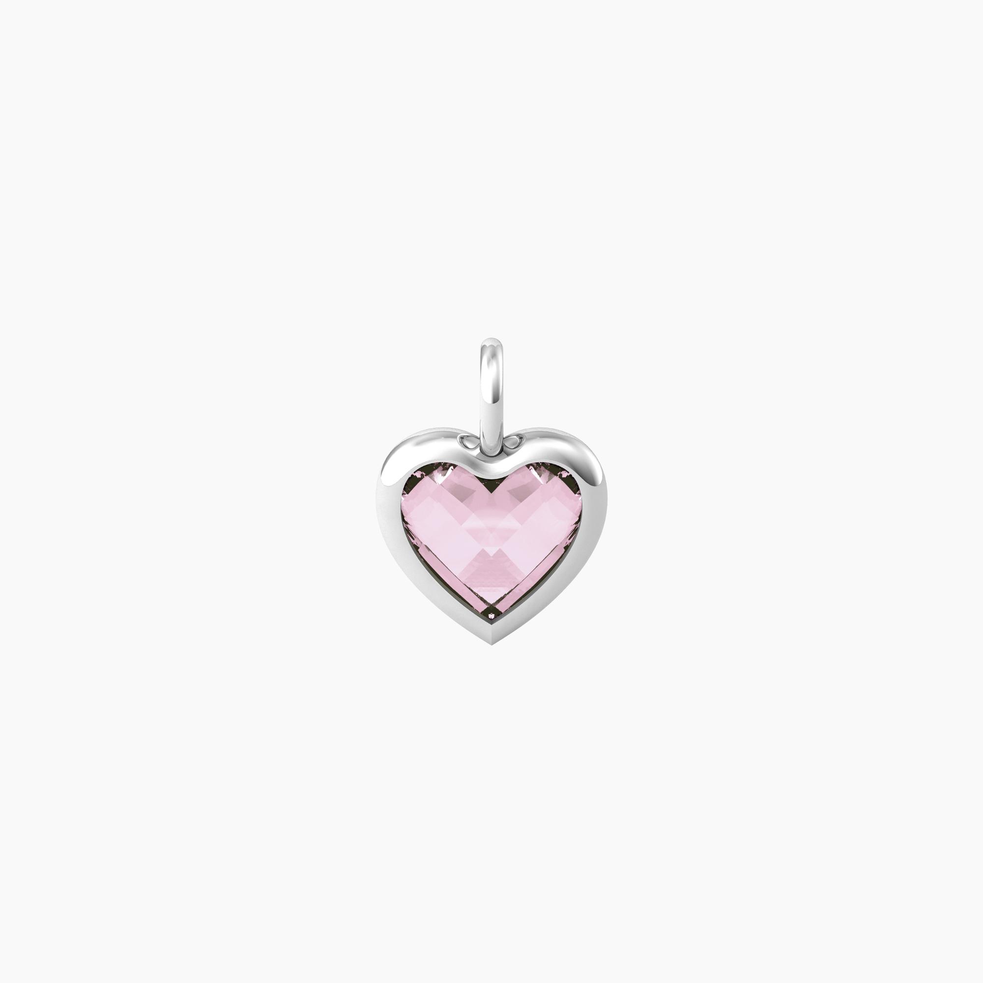 Ciondolo in acciaio a forma di cuore con glass rosa faccettato taglio briolette.