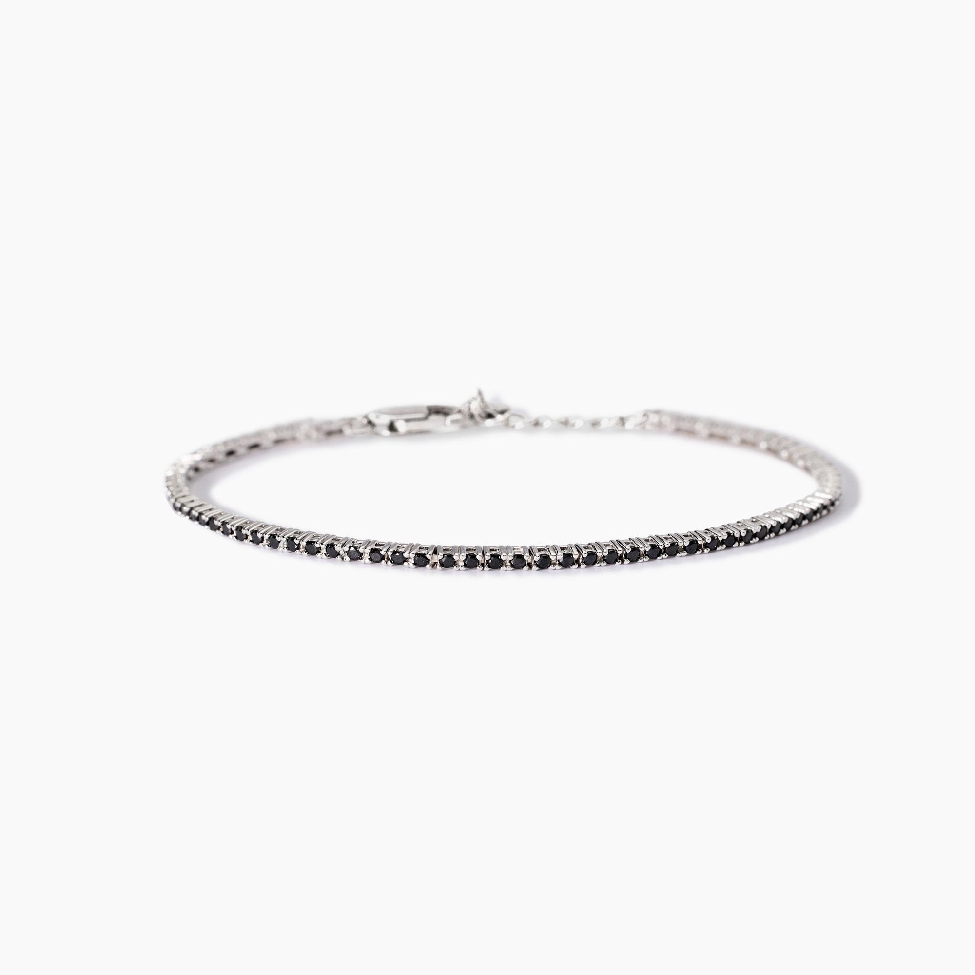 Bracciale regolabile tennis da uomo in argento rodiato con zirconi neri.