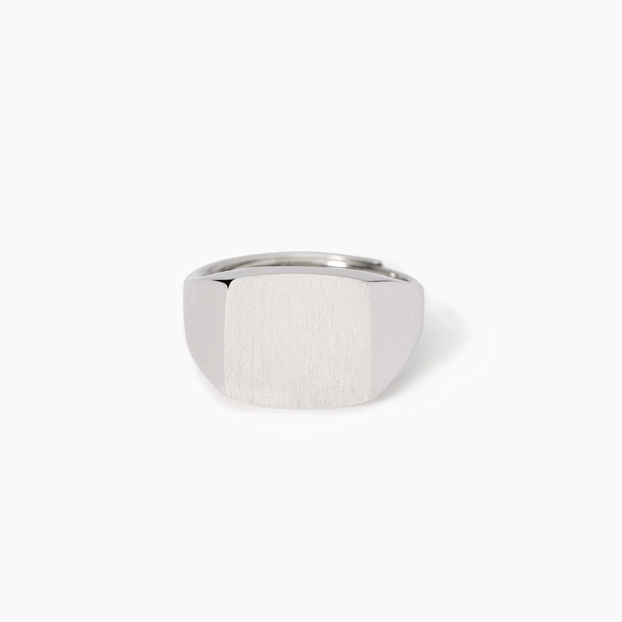 Anello chevalier da uomo in argento rodiato con tavola quadrata satinata.