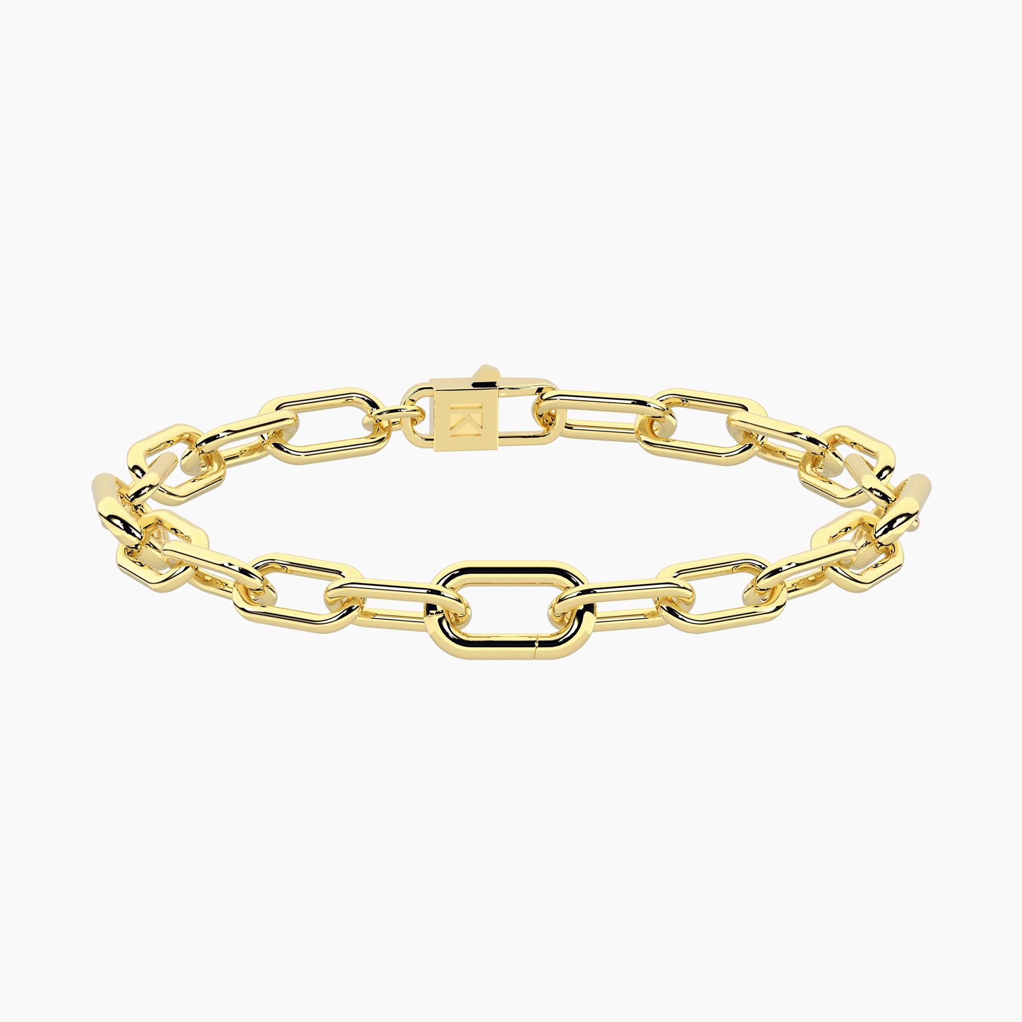 Bracciale donna componibile in acciaio e PVD giallo a maglia larga con catena forzatina e tre link apribili. Inserisci nel link da 1 a 2 charm.