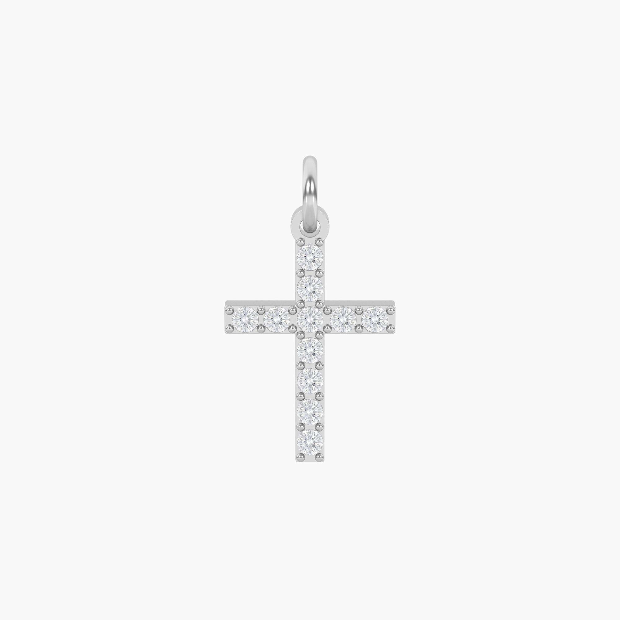 Ciondolo in acciaio a forma di croce con cristalli.