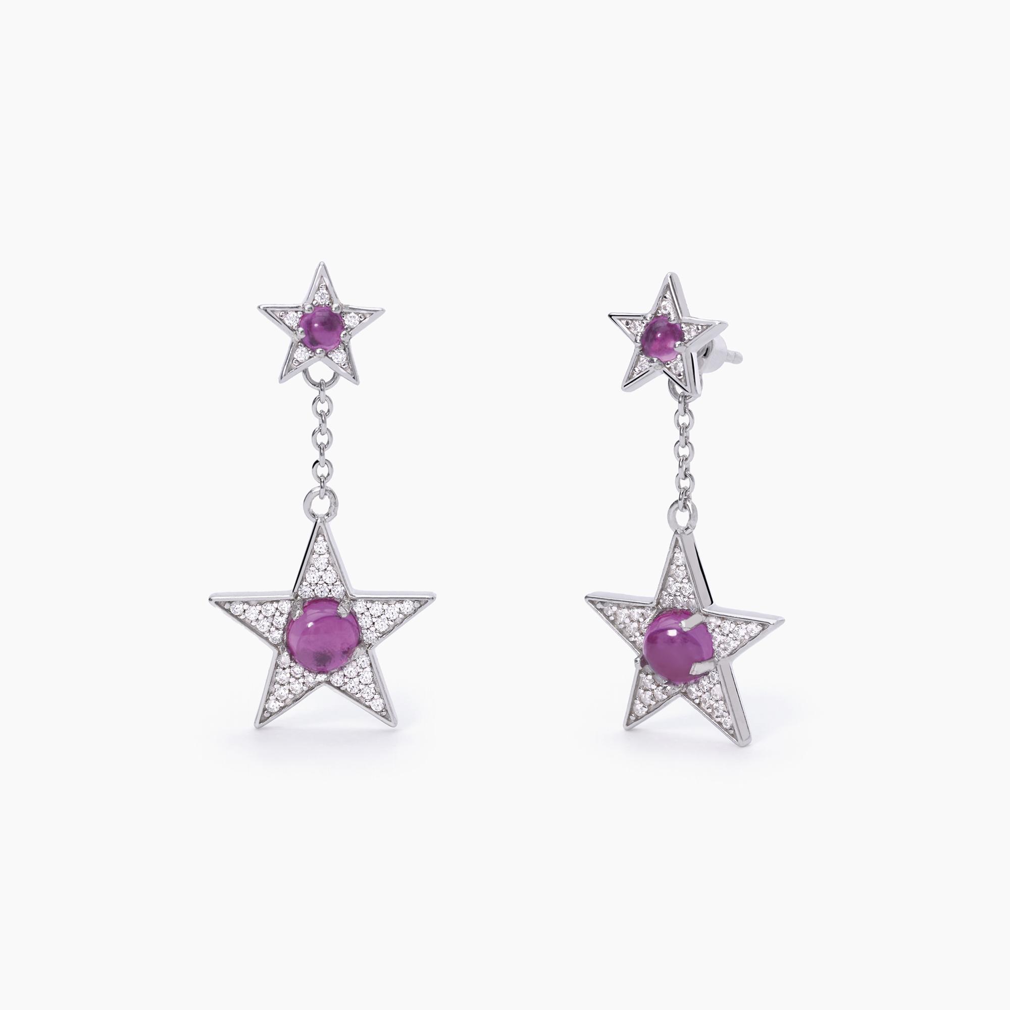Orecchini pendenti in argento con stelle con tormalina sintetica e zirconi bianchi.